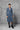 Grace the scene in this opulent distressed denim trench adorned with intricate rivet embellishment —a timeless essential.