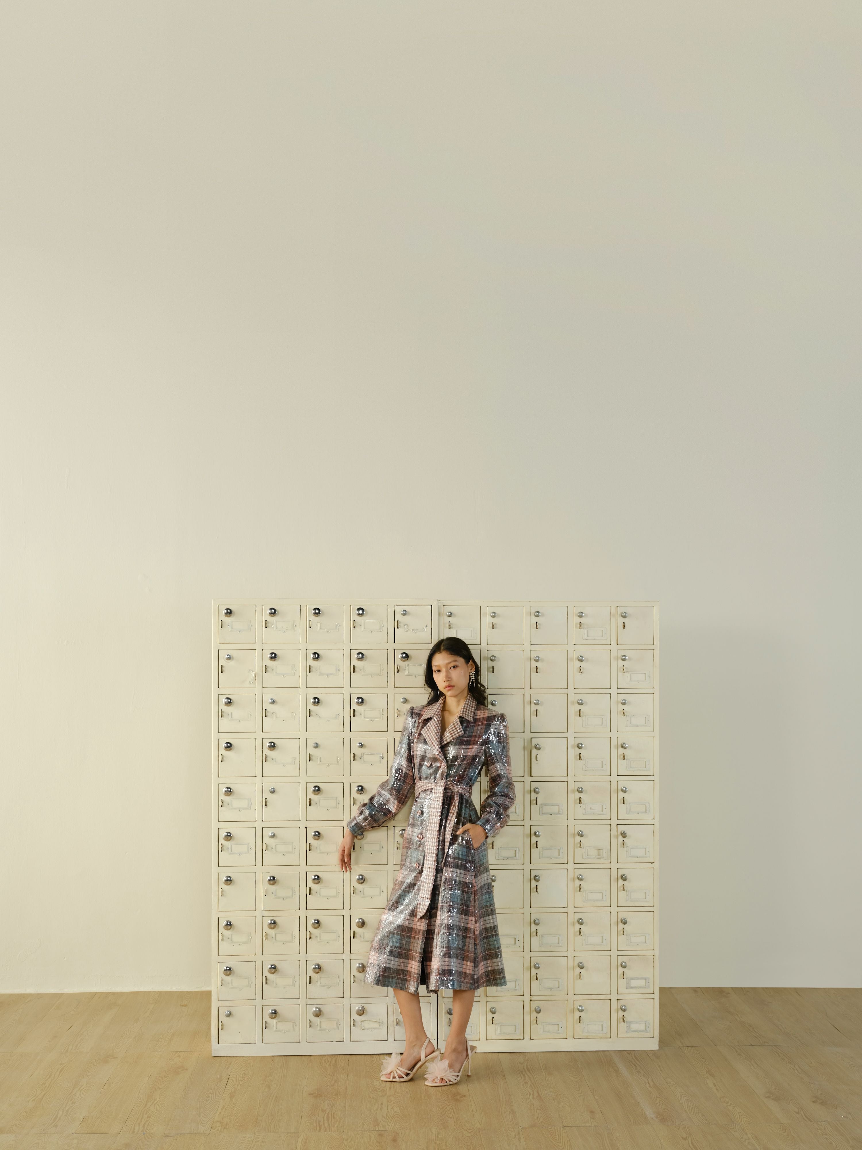MAKE A STATEMENT IN OUR PLAID ALL-OVER SEQUINED TRENCH DRESS. THE CLASSIC TRENCH SILHOUETTE IS REIMAGINED WITH SHIMMERING SEQUINS ON PLAID PRINT, CREATING A STRIKING, ELEGANT LOOK. PERFECT FOR BOTH EVENING GLAMOUR AND POLISHED DAYTIME STYLING, THIS DRESS EXUDES SOPHISTICATION AND CONFIDENCE.