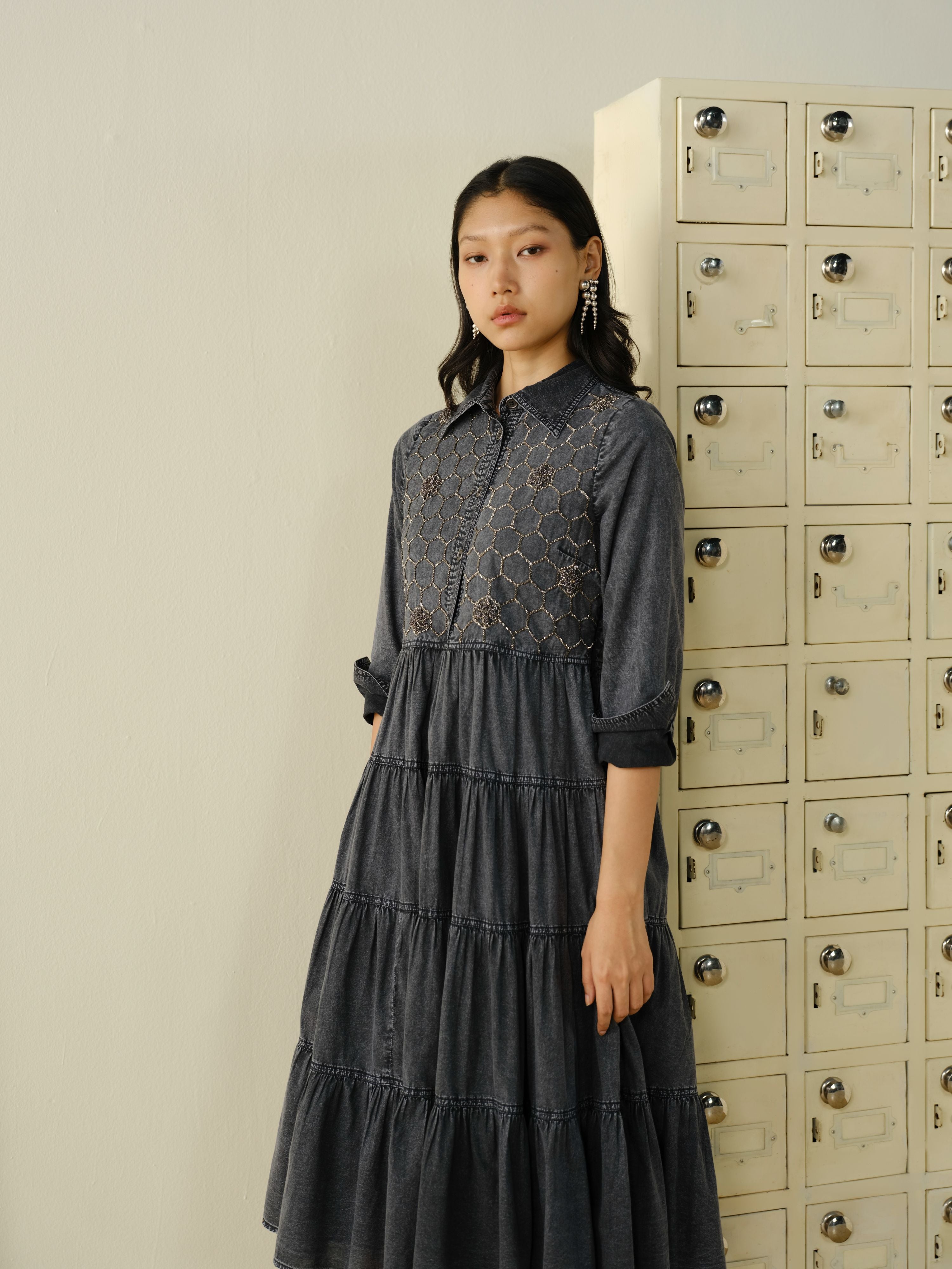 OVERDYED HONEYCOMB EMBELLISHED DRESS
